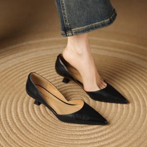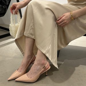 Women’s Slingback Sandals, Niche Pointed Toe Low Cut Kitten Heels, Elegant Korean Style Retro Fashion High Heel Pumps For Spring