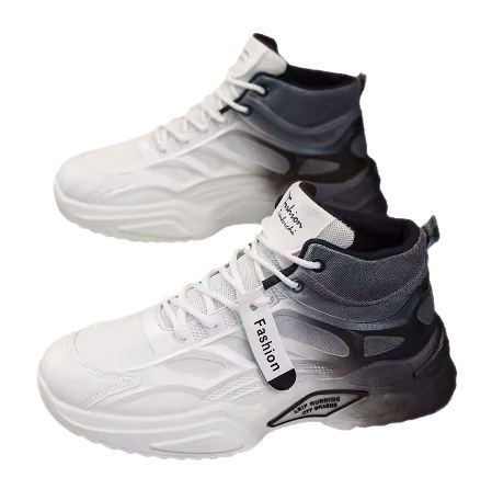 Features: Color-block design, thick sole with low heel (1–3 cm), high-top construction, front lace-up closure, cemented outsole structure, height-increasing function, suitable for all seasons
